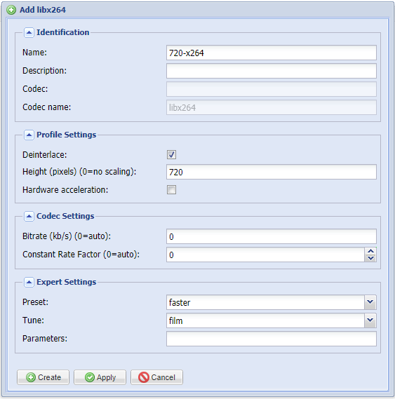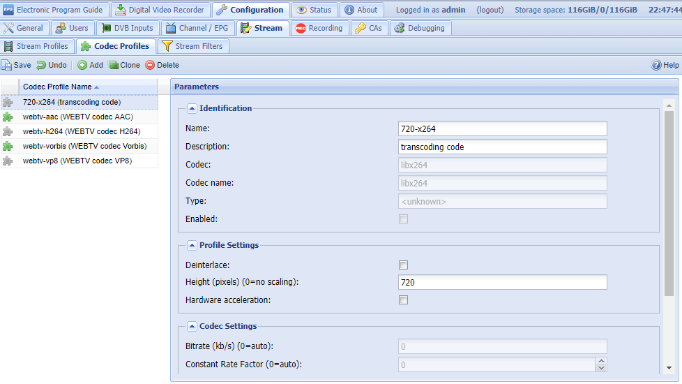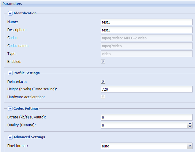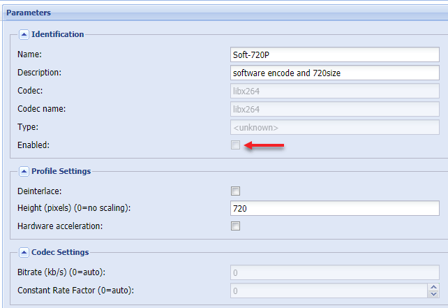 you need to make some new "codec profile" then create a new stream profile - but like said currently not working for Rpi