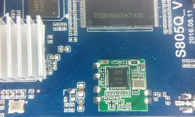 2. Using a screwdriver and a soldering Iron, I removed the onboard wifi pc board (S9083c) that came with the s805.