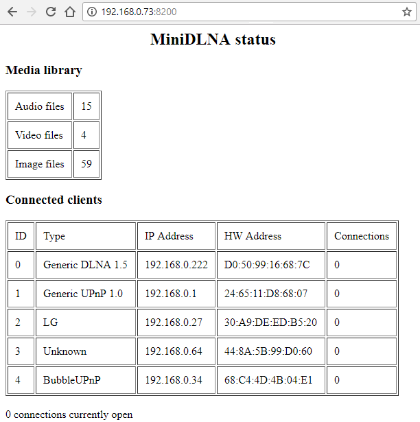 As personally tested, the Generic LE addon for MiniDLNA works pretty well.