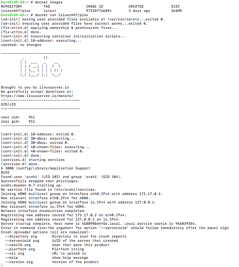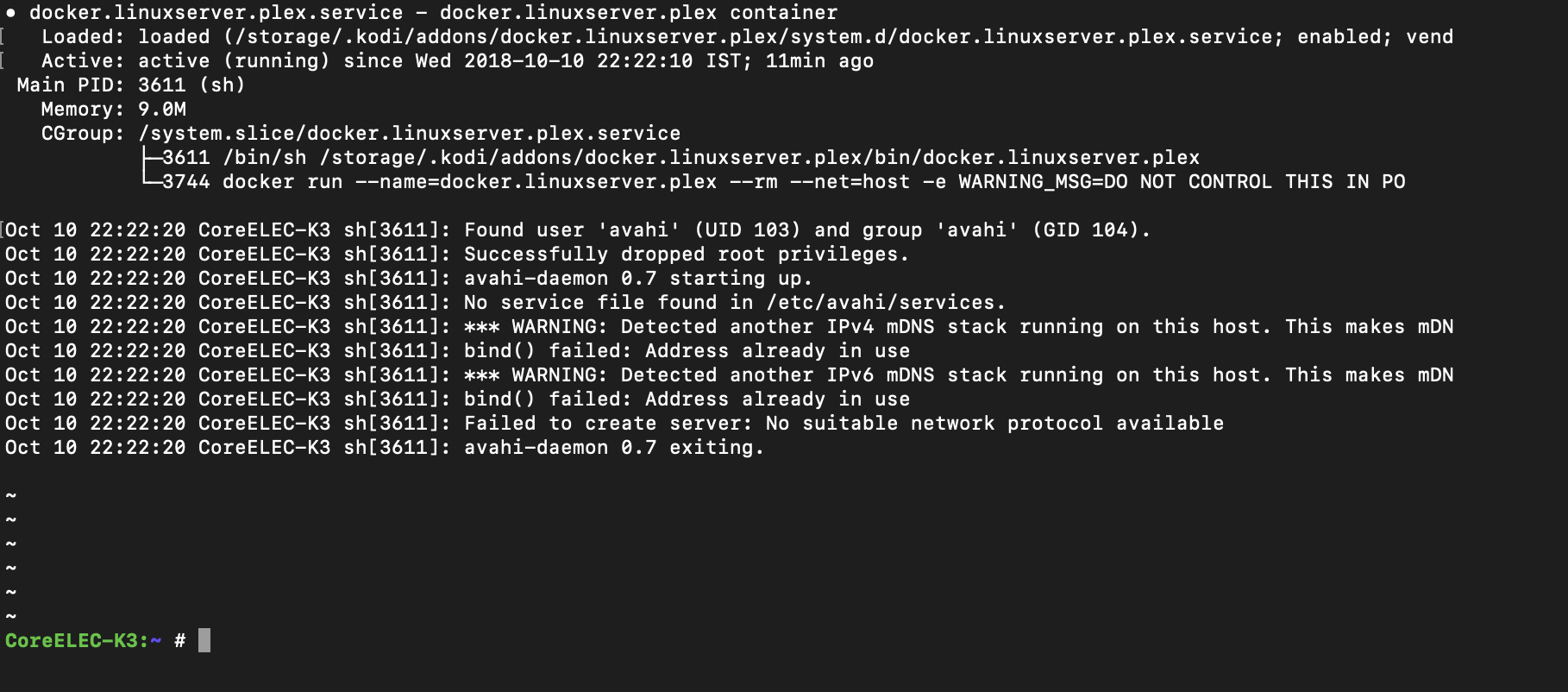 Hi, I looked into that and I found this list of Commands For Troubleshooting and after trying first two - “docker ps -a” and “docker images”, I'm being suspicious that PMS is just not installed at all. Just to test this I installed another Addon called Portrainer and I can see it there on the list of images and I could log into Portrainer from web and everything. See attached screenshot from terminal.