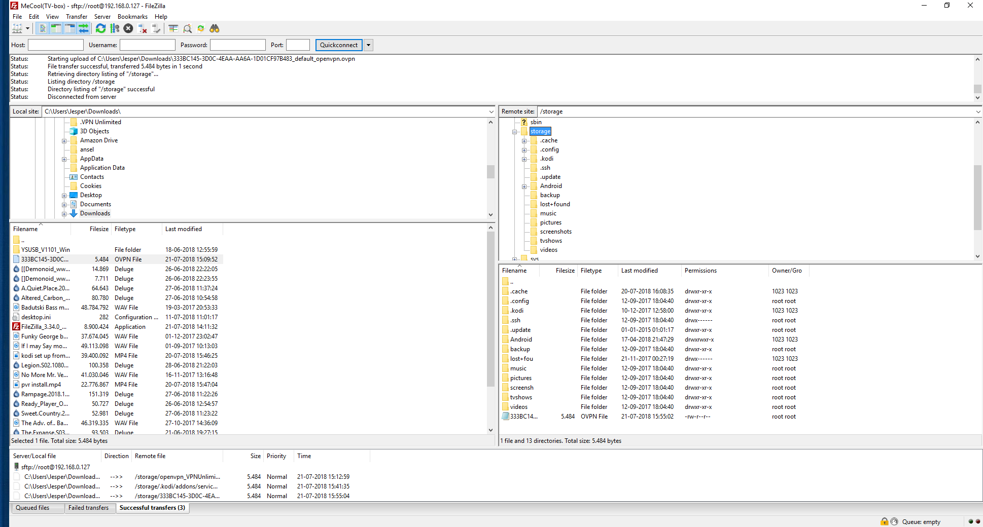 I attached a couple of screenshots from Filezilla to show that the .opvn file has been transferred to the box. I've tried several destinations but nothing works. It could be my understanding of the libreelec file system that isn't adequate.