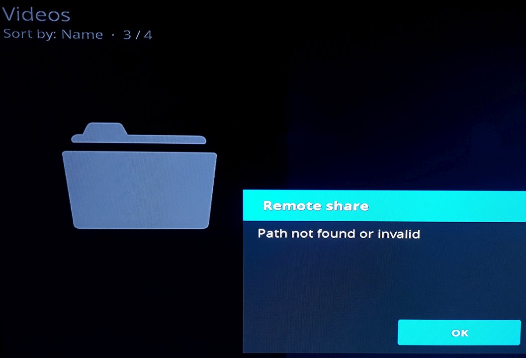 When I click in Videos > Files > I recieve the message: Remote share: Path not found or invalid