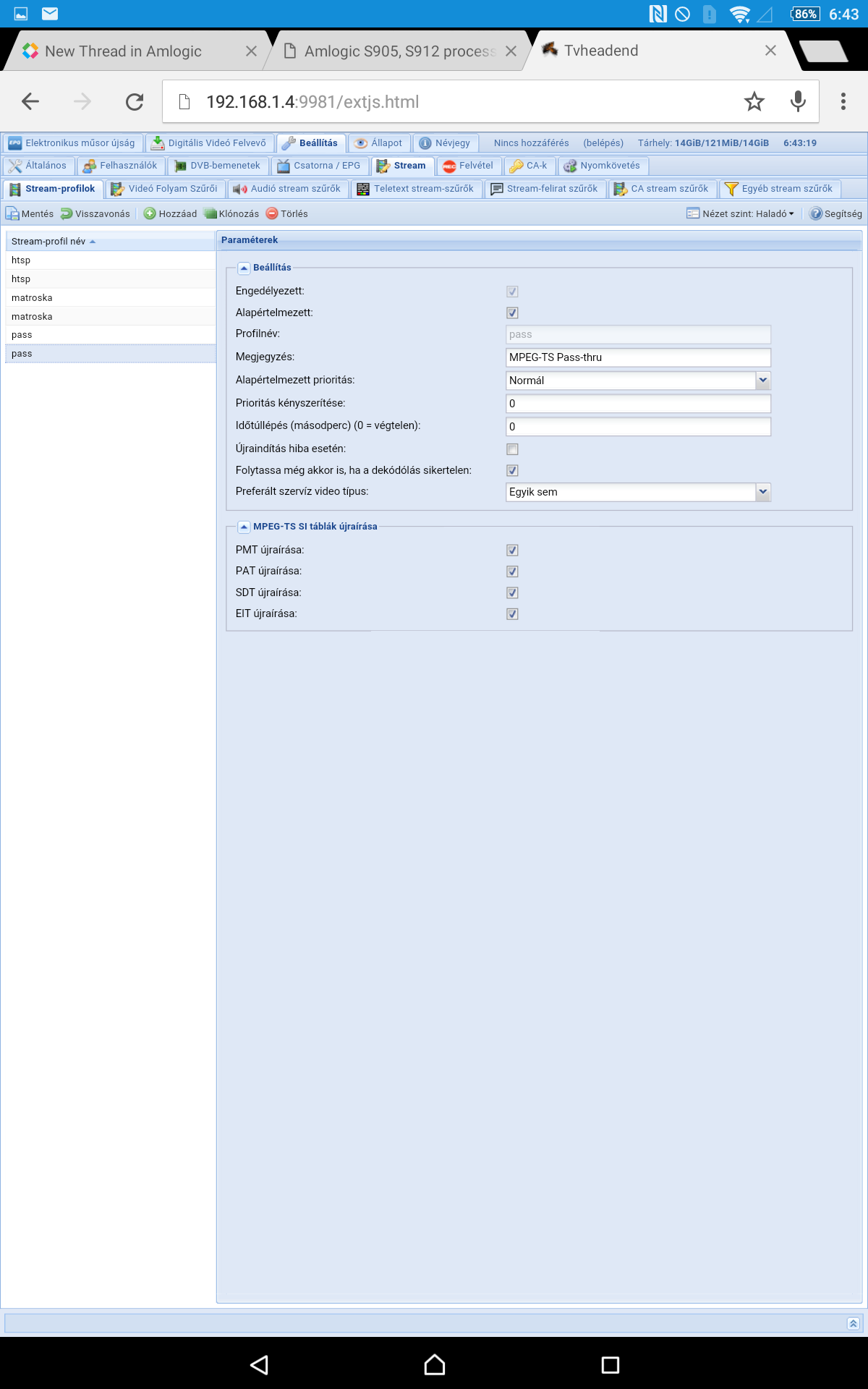 Live TV streaming profile htsp, and isn't changeable