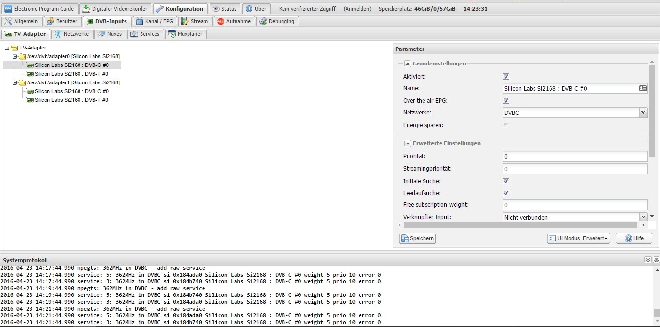 Don't know whether to put it here. Just installed TVH 4.2 on my Cubox-i4pro. Before I already deactivated the 4.0 version in addons. First everything seemed fine. Both my DVB-C sticks detected. However, although I did the whole procedure (Creating network, choosing predefined muxes, enabling tuner, linking network to tuner) the tuners won't scan for services even when forced. Also already did a restart of the Cubox-i to rule out any post-installation hiccups.