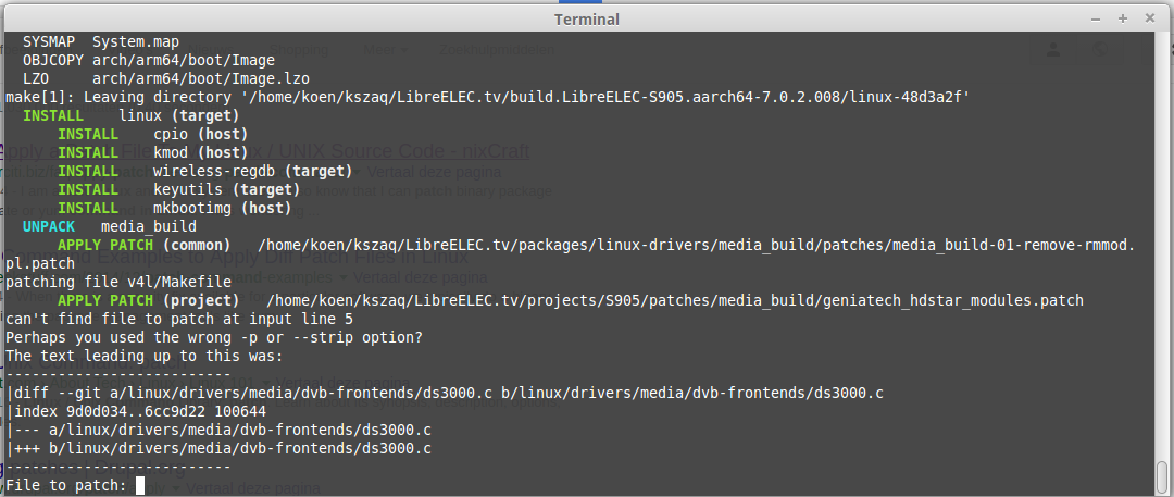 I have placed /drivers/media from the zipfile in a directory that I created, called "linux", in projects/S905/patches/media_build