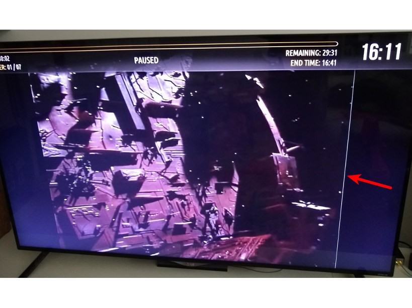In LibreELEC running on a Raspberry Pi 4, playing any 10-bit HEVC videos that are 4:3 aspect ratio cause a white line to be shown immediately to the right of the video.