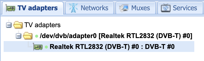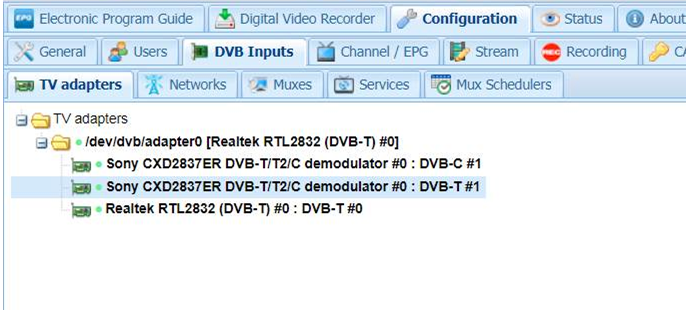 I've connected my tuner, but on TvHeadend I'm only able to see the DVB-T tuner, as shown on image below:
