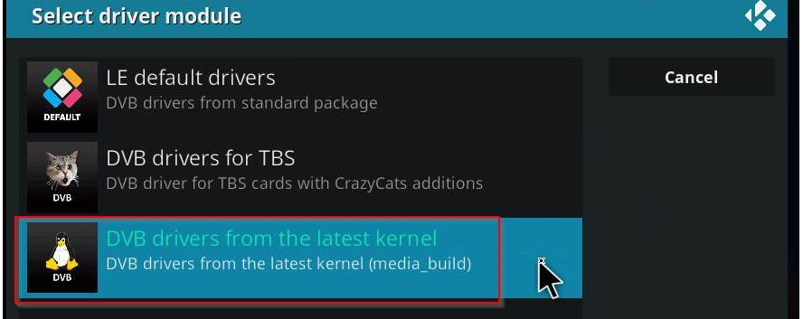 After some online reading, I've seen some comments advising to try enabling DVB drivers from the latest kernel (media_build). So I did this change, like seen below: