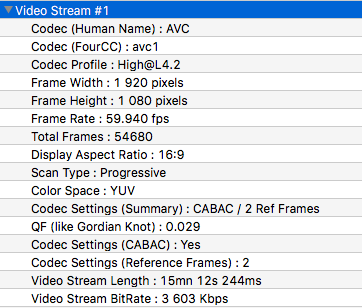 I get exactly the same video information from the video Hans uploaded: AVC [email protected]