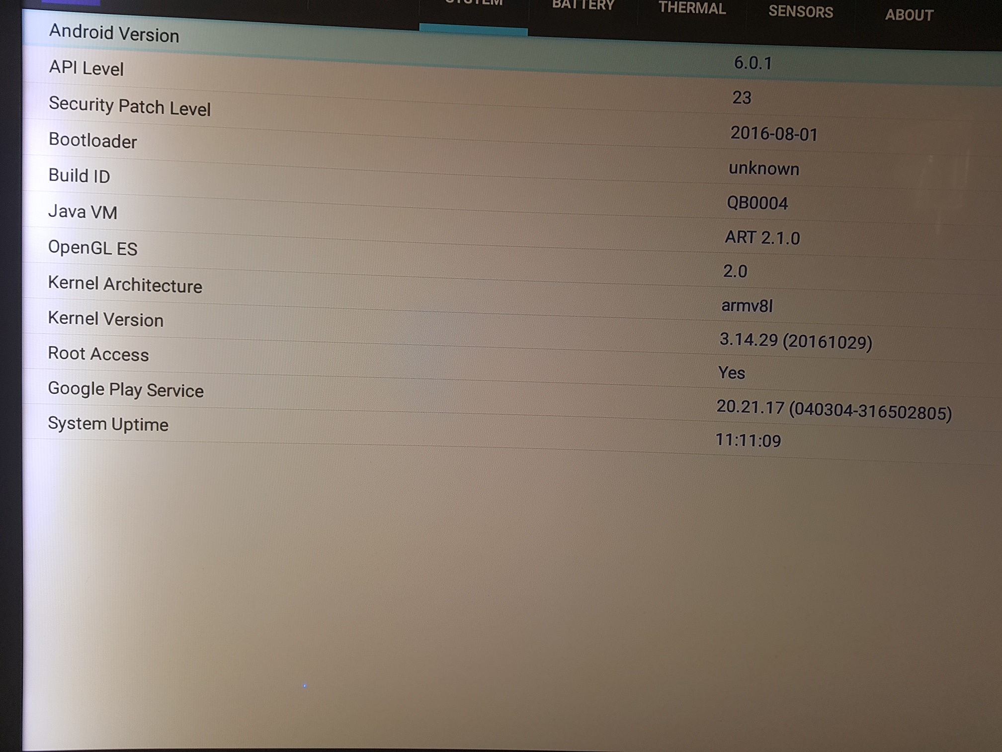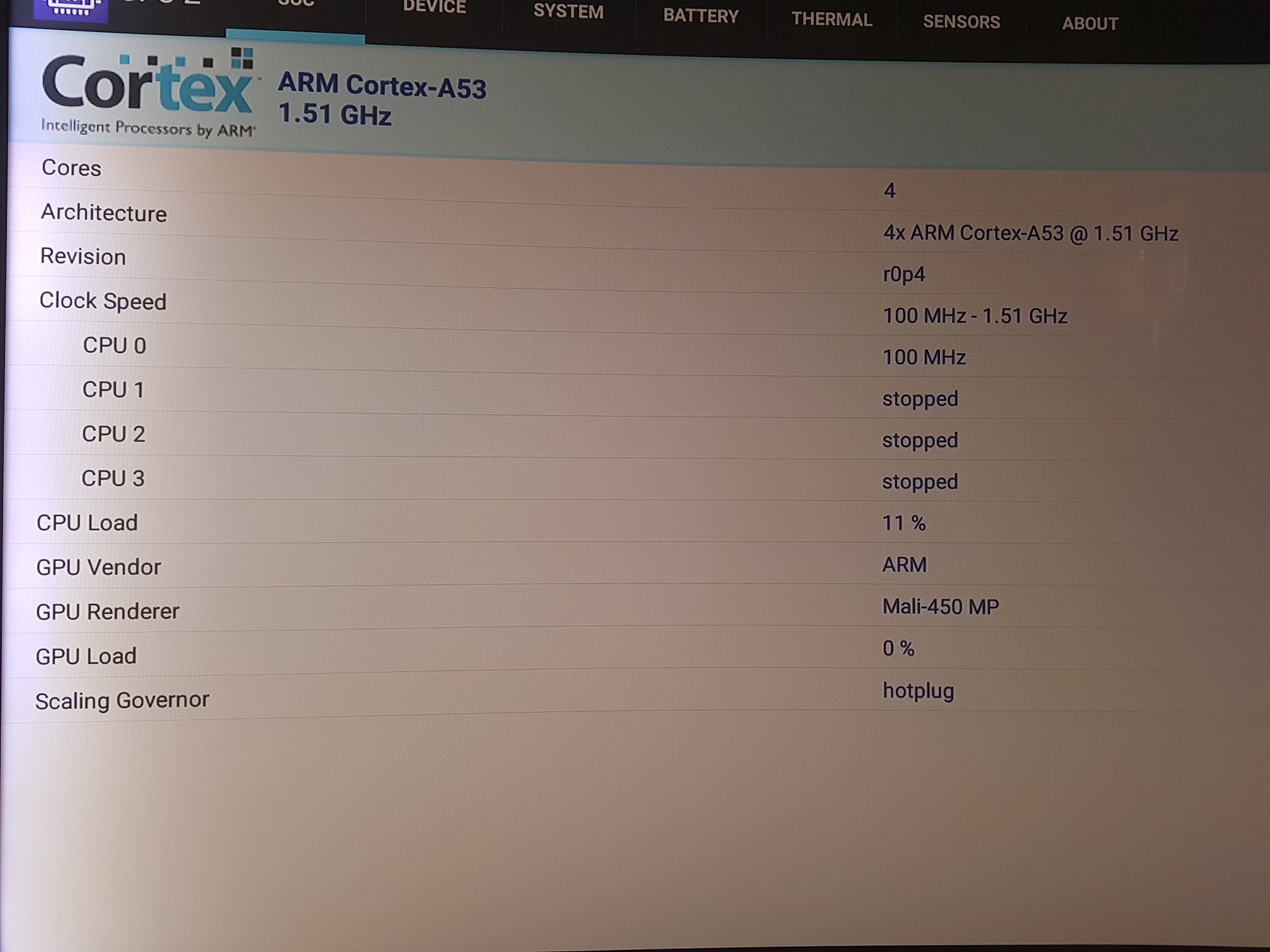 Edit: Android 6.0 operation system. Amlogic S905X CPU, Quad core, ARM Cortex-A53, 2.0GHz. ARM Dvalin MP2 GPU 2GB DDR3 RAM