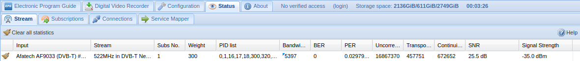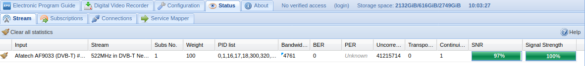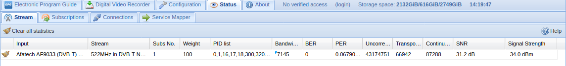 On the computer (HTPC), I sometimes have a lot of Transport Errors and Continuity Errors. The signal is usually very good, but several times per hour, it gets totally scrambled. When this is the case, it seems to me that stopping the client and starting it again solves the problem, which is weird.