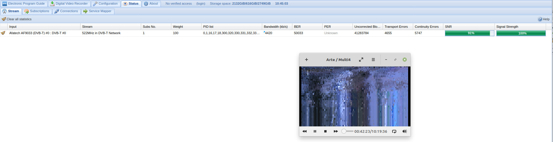 I have some signal noise problems using an USB DVB-T tuner AVerMedia AVerTV Volar hd2 (seen as Afatech AF9033 in TVHeadend).