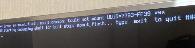 changing the usb port during install brought up the usb stick as install target and nightly was installable, but a subseq. boot runs into an debug shell (see attached photo).