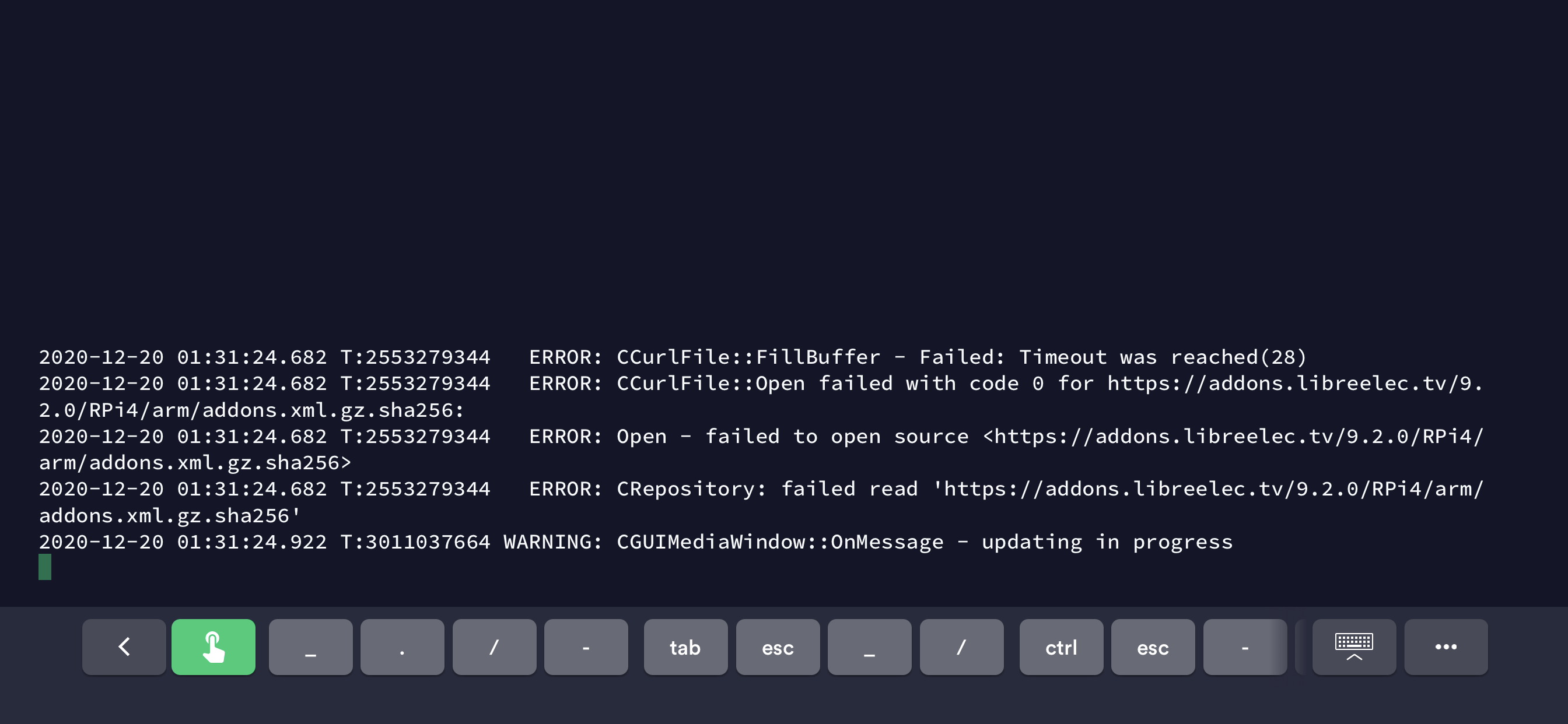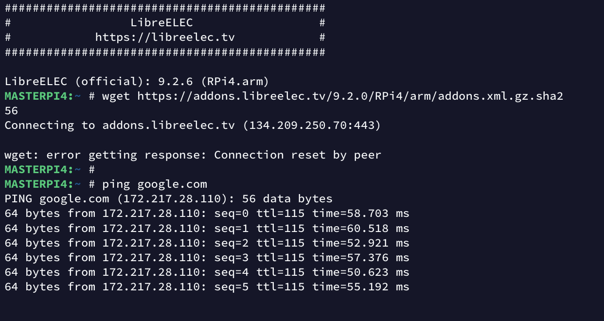 Hi everyone, I've just installed the new version for RP4, but when I try to open the libreELEC add on repostiory, I'm getting the message "Could not connect to Repository". I'm running version LibreELEC (official): 9.2.6 (RPi4.arm). I can open the kodi official repository, actually I was able to install some addons from this repo, but I cannot connect to libreELEC repository.