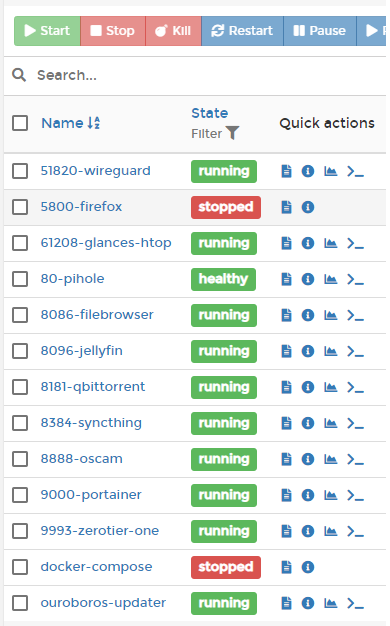 In LE I have many server services installed, and among them are Zerotier and WireGuard, for the remote connection I preferably use Zerotier VPN, where my LE has the IP address 10.10.10.1, and as an alternative I also have WireGuard VPN available, where my LE has the IP address 10.10.20.1. So then, with my smartphone from anywhere I can access to portainer in LE with the IPs 10.10.10.1 and 10.10.20.1, and check, for example, which containers have been updated by the container updater ouroboros, and also put running and stopping other containers. Obviously, with my smartphone I can open an SSH session with Termius or an SFTP session with the X-plore file explorer at any time to do other things.