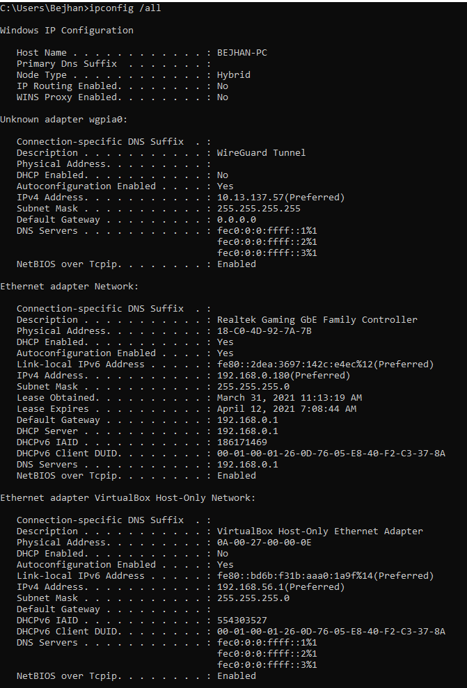 BEJHAN-PC has an IP address of 192.168.0.180 so I'm not sure where that is coming from.