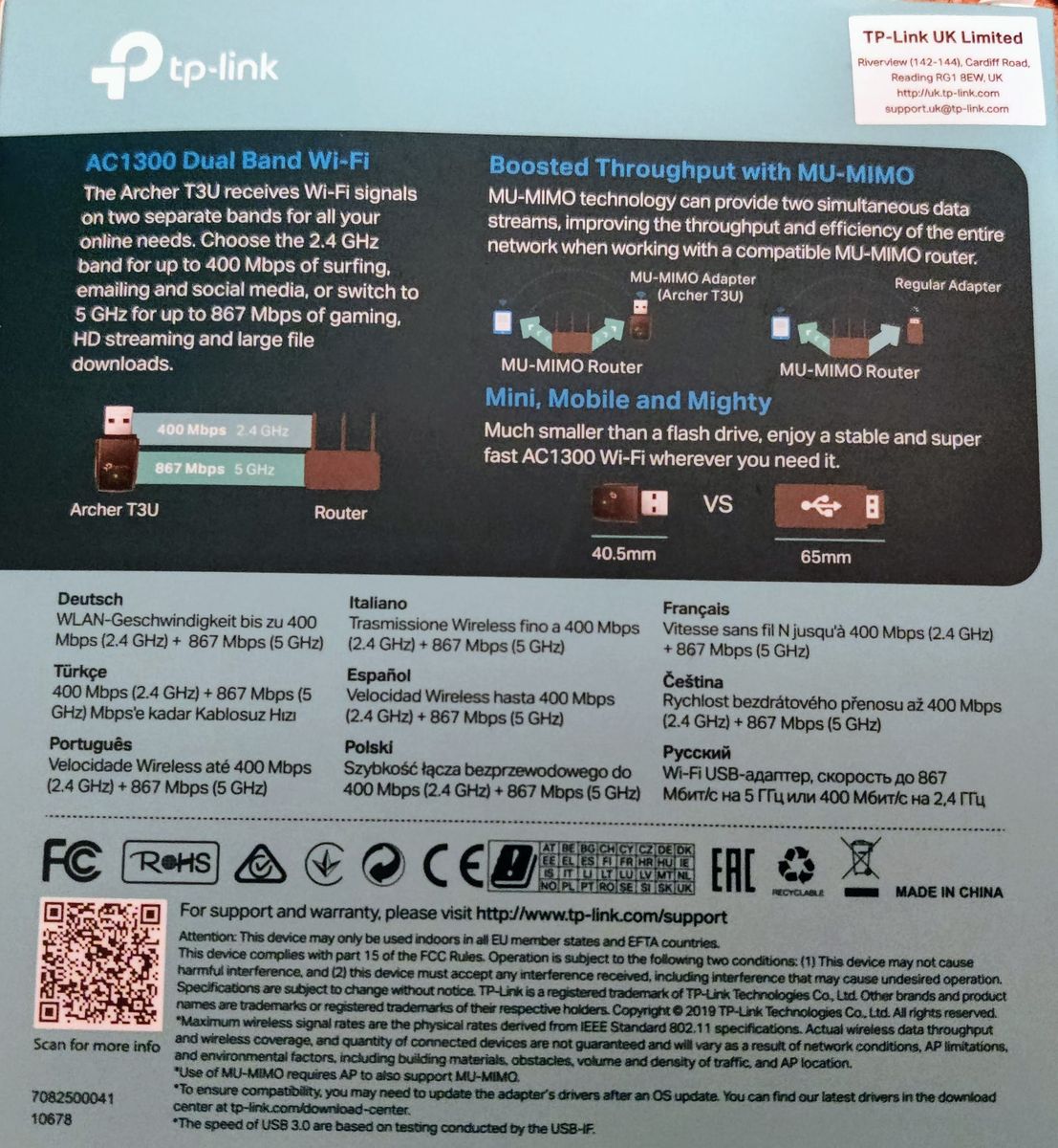 I attach a photo of the package of the TP-Link AC1300 USB Wifi adapter in case other users have the same model and can add a voice of support for this request.