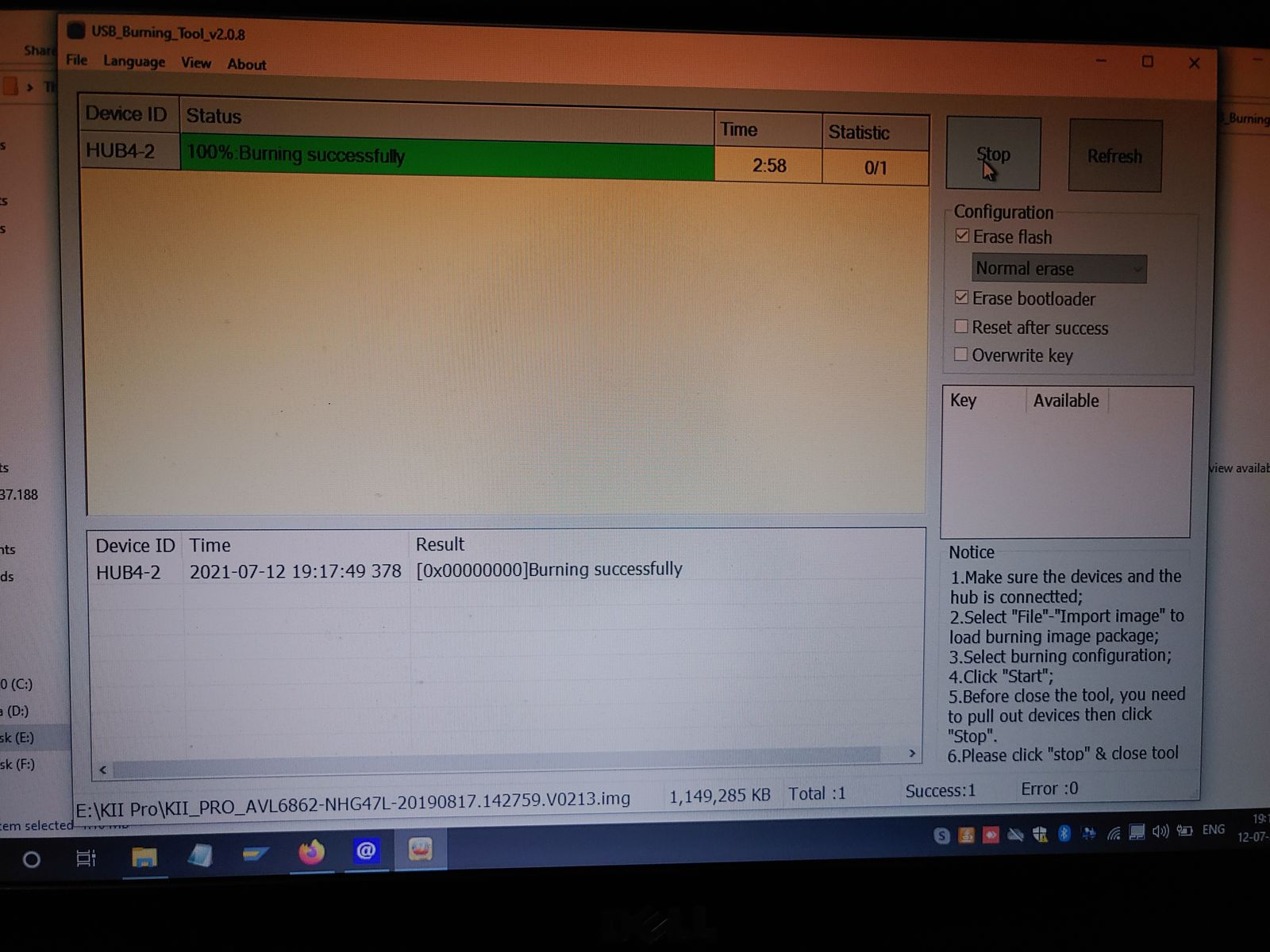 USB tool shows flash is successful, but still there is no desplay, only blue light