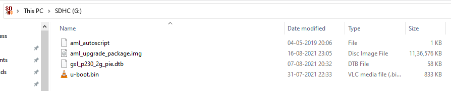 Write LibreElec img to mSD card. Open the mSD card on the PC. Look for aml_autoscript.. in the first FAT partition.