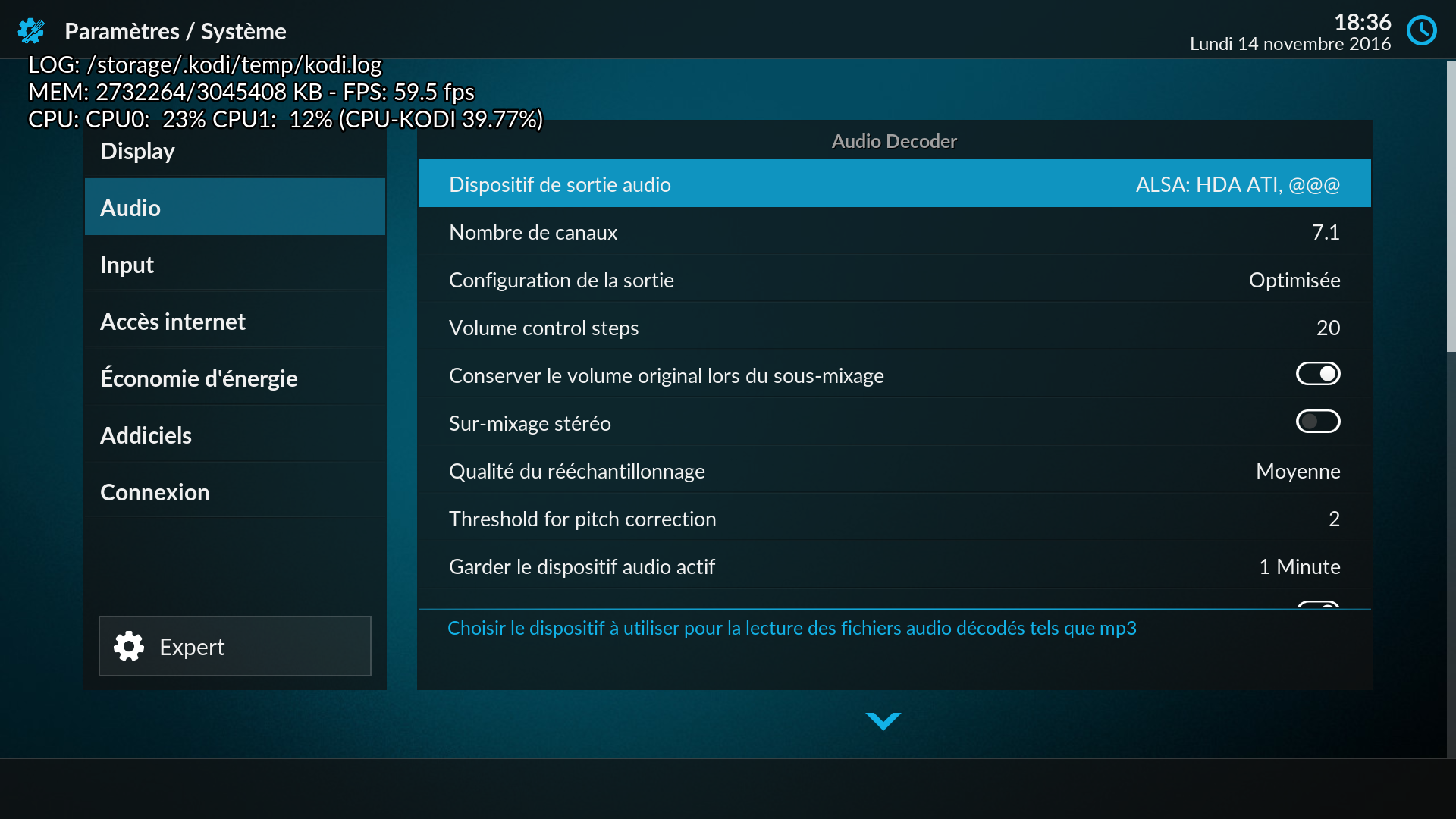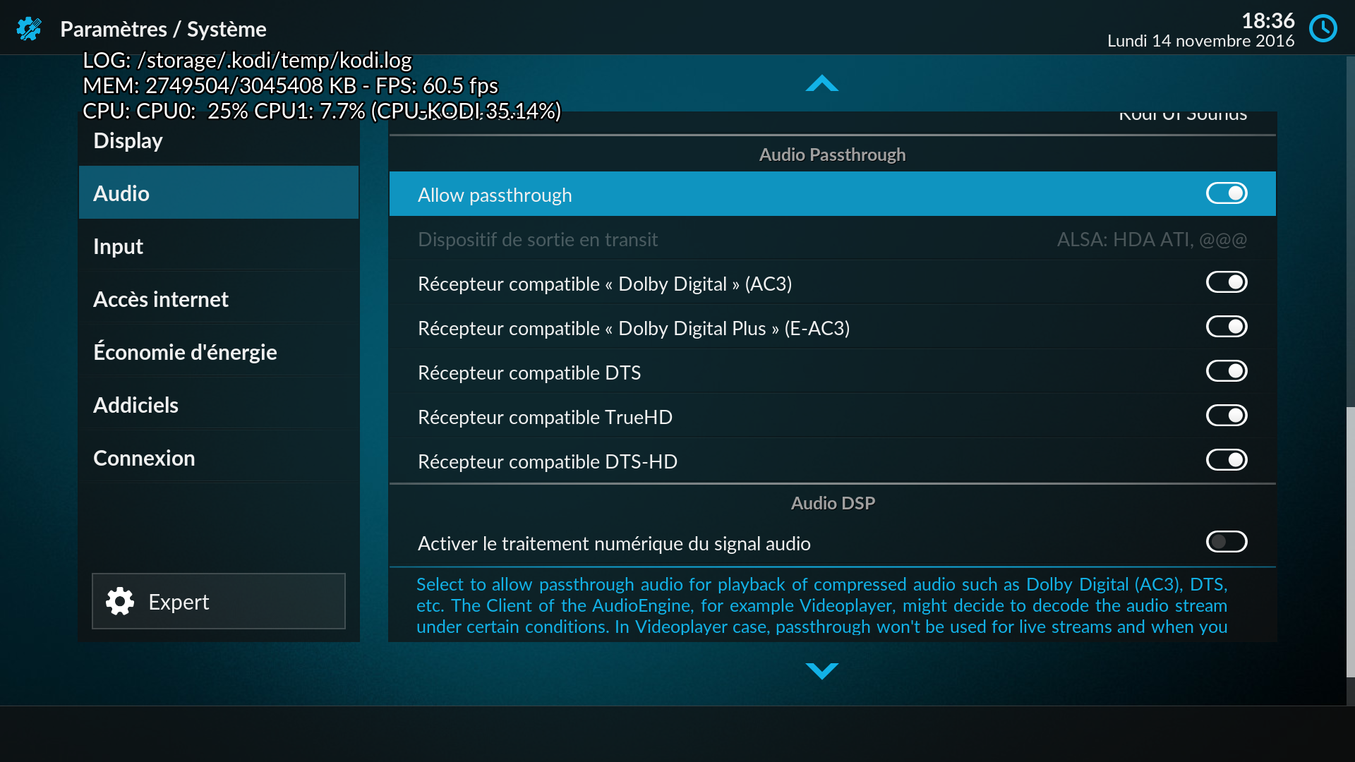 You'll also find attached screenshots of my Audio settings (sorry if the screenshots are in French).