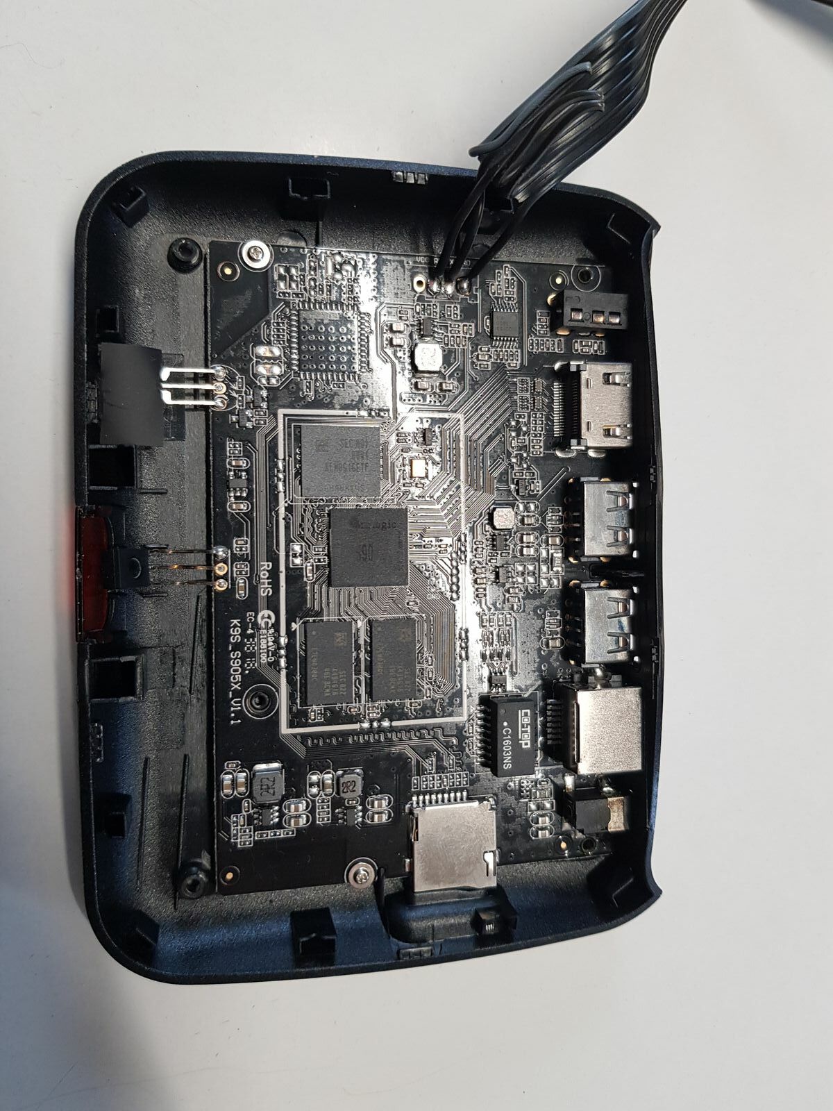 You can write the AMLGX "box" image to an SD card (no flashing to internal storage, we don't support that) and experiment with different dtb names in uEnv.ini (edit the dtb to use, don't rename the dtb files). I can't really recommend a specific dtb to try; perhaps VIM1 since this has a complete dtb with features like Broadcom WiFi/BT enabled. The boot log shows the box has BL2 secure firmware, but that just means we need to exclude some additional memory areas (and we do, else we use them and crash the secure world OS). It's 1GB device so I would have low expectations for overall performance. LE images should support the keyboard without any issues. If you meant the remote, you will need to put it on the network and SSH in then follow https://wiki.libreelec.tv/configuration/…figuration-hard
