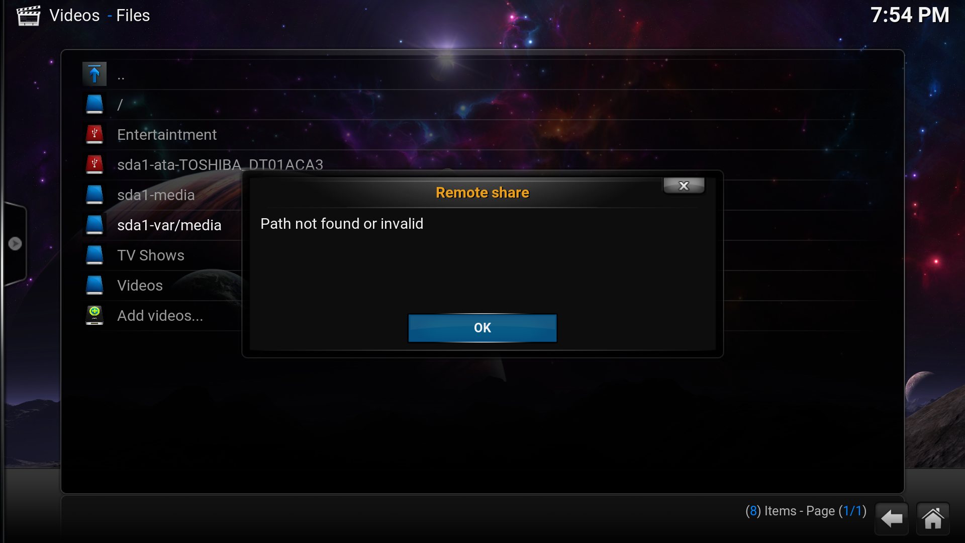 2022-01-04 21:47:31.282 T:1118 ERROR <general>: GetDirectory - Error getting /var/media/sda1-ata-TOSHIBA_DT01ACA3/