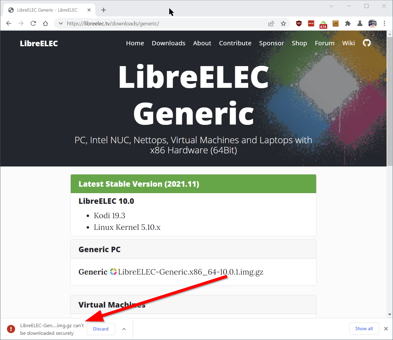 Click on the upper arrow right next to the error message and you should get an option to download anyway.