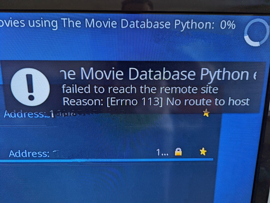 When I switch over to scanning movies using The Movie Database Python, I get... The screenshot with error shown. Both wireless and wired connection are active, so it isn't that.