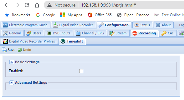 When I try to configure the timeshift buffer in TVHeadend 4.3 Alpha or 4.2 it does not hold the enablement flag.