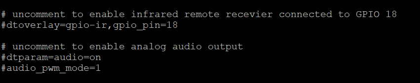 November 11, 2022 at 3:43 PM #2 uncomment means you have to remove the "#" at the beginning of the following two lines. That part of config.txt should then look like this: Code # uncomment to enable analog audio output dtparam=audio=on audio_pwm_mode=1 so long,Hias