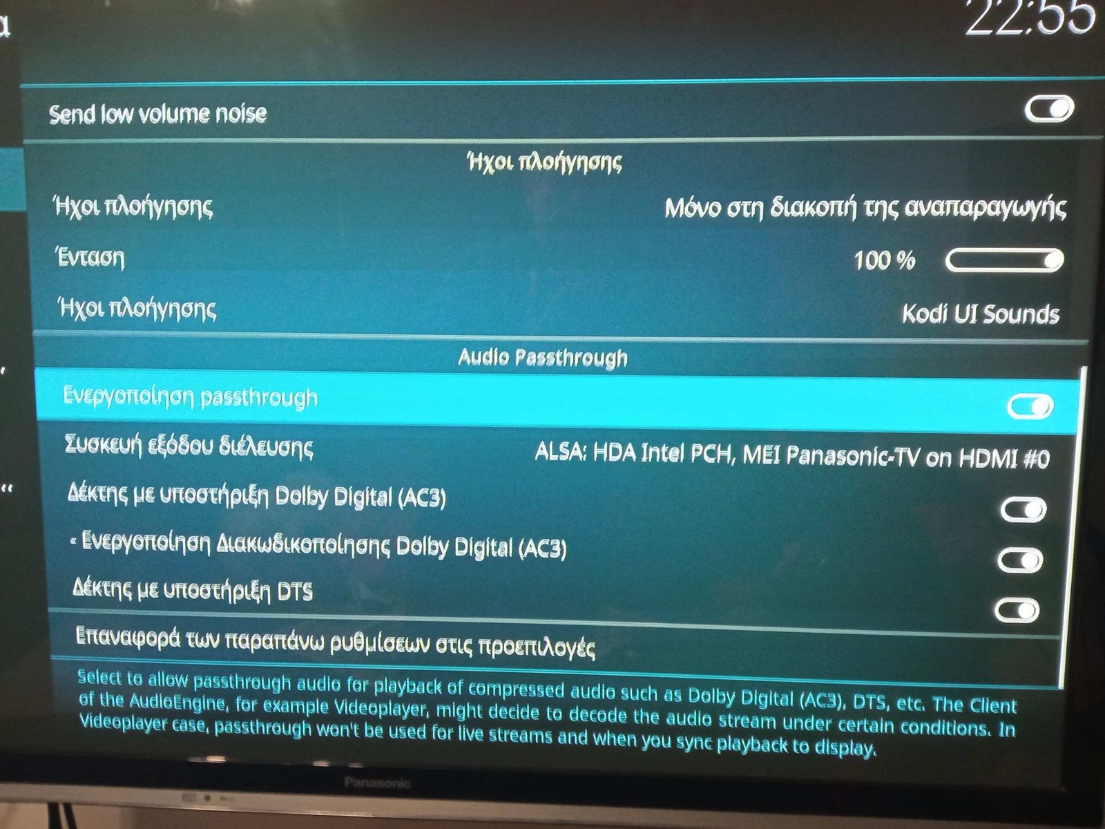 Apologies for the somewhat cryptic title. I have a notoriously old setup with a 10 year tv and a beasty 25-year old (!) Yamaha A2 amplifier. Up to some days ago, my needs in the living room were served by a (also old) AMD-based pc that was equipped with an optical output. Setup worked like a charm: video was sent to the Panasonic 50" plasma over HDMI and LE was configured to transcode anything multichannel to 5.1 DD (amp also is 5.1 DTS capable).