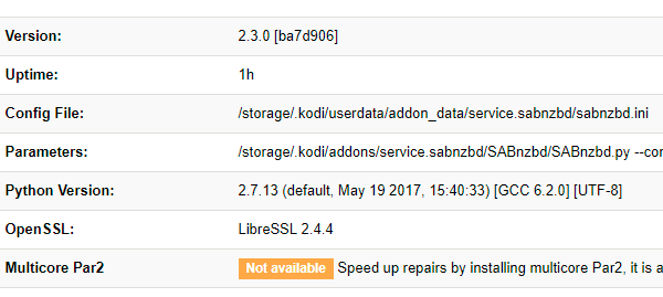 I have a few queries in relation to performance though, I noticed repairs are slow and sabnzbd is "recommending" I install the multicore par2. Ive had a look around but cant seem to work out how to do this using kodi/libreelec, is possible and/or how do I go about that ?
