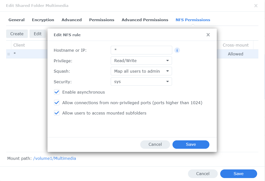 Jul 22 13:30:58 MEDIACENTRE mount[1282]: mount: mounting 192.168.0.10:/volume1/Multimedia on /storage/multimedia failed: Invalid argument