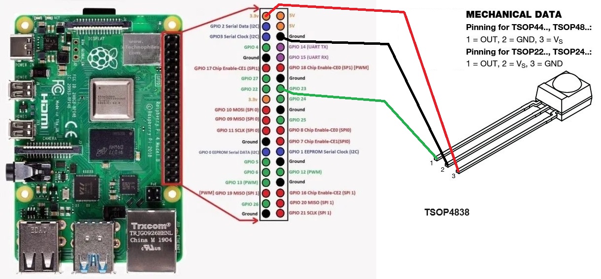 - TSOP in my case was connected to GPIO pin 23, so following line needs to be added to config.txt (you can edit it directly on the SD card):