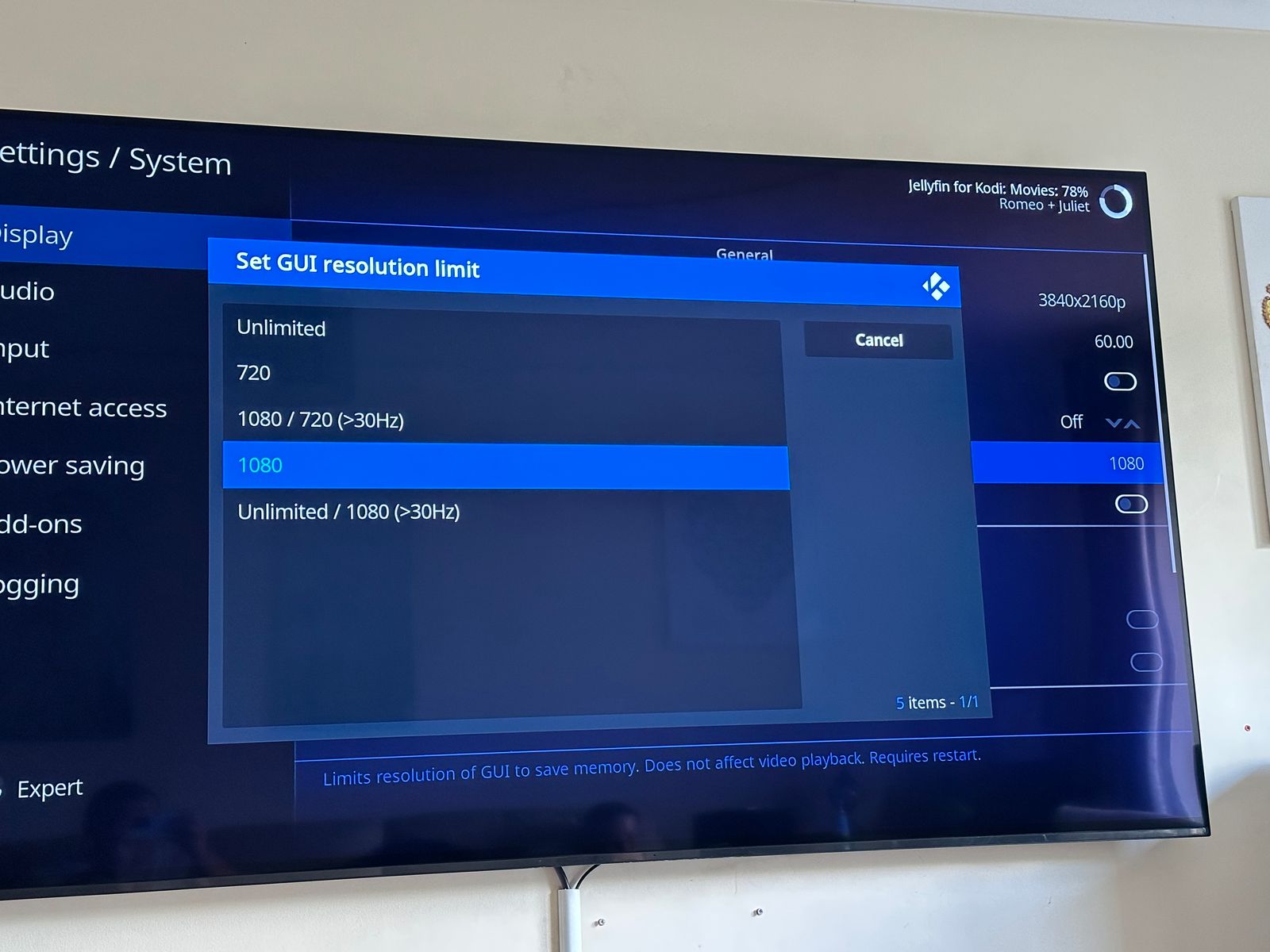 TLDR: set default hdmi mode to 1080p60 and whitelist any 4k modes you want when actually playing videos.