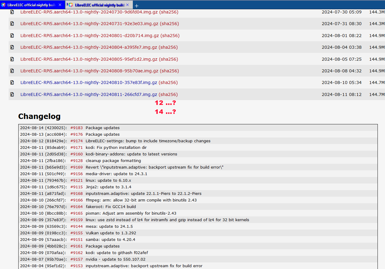 I'm running a Rpi4 with 13.0-nightly-20240621-ea28fa9 build. The 20240623-a76b305 build has issues with CEC via my LG TV remote. No response at all. The 20240621-ea28fa9 build works fine.