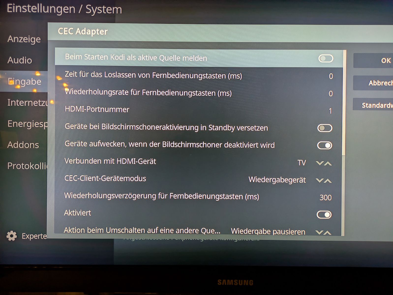I’m running LibreElec 12.0.1 on a RPi4. The RPi is connected to a rather ancient Samsung TV (bought in 2011-ish…). Additionally, there is an HDD directly attached to the RPi via USB as storage. Said HDD is made accessible via SMB in my local network for managing its contents. When I’m not using it, the whole set-up is shutdown – because the RPi4 has no power management to hibernate it or something similar.