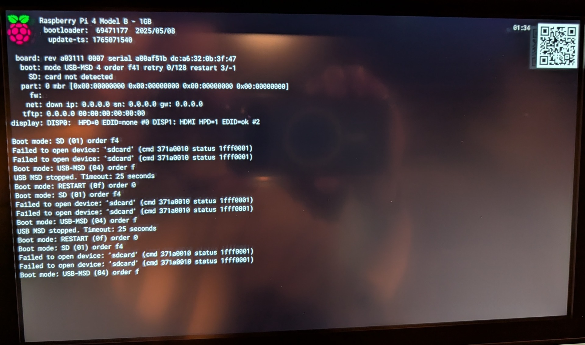 I had this working a year+ ago, updated things, and now I'm just getting the rainbow/color wheel initial boot image and then a black screen. Digging through the logs it appears to be detecting a 1280x720 display, which is what the van has.
