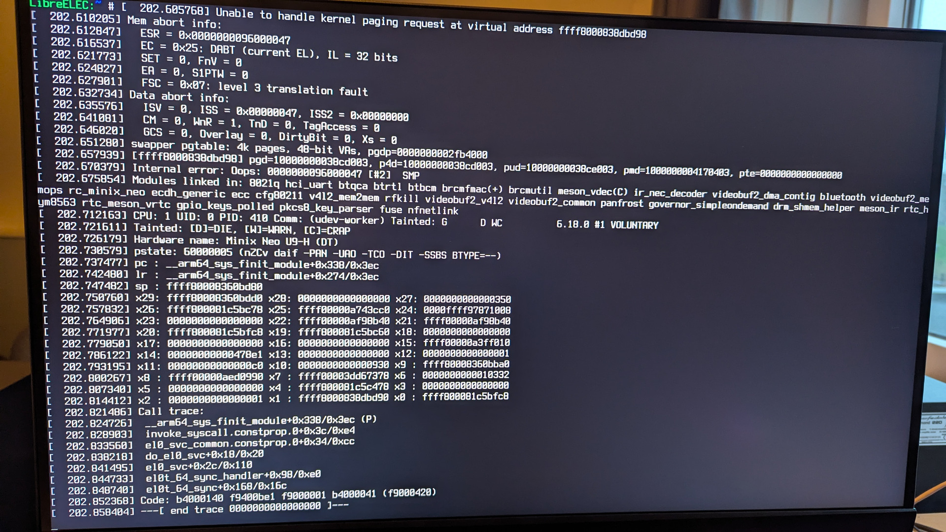 Dusted off my Minix Neo U9-H again to try my kinda-yearly attempt at reviving it again. I tried booting the latest image from your testing share, but it did not boot properly; Kodi did not manage to start. The first boot, it got stuck on repeatedly starting and stopping kodi.service, the second boot, the Kodi splash screen actually showed up, but it just remained there indefinitely.