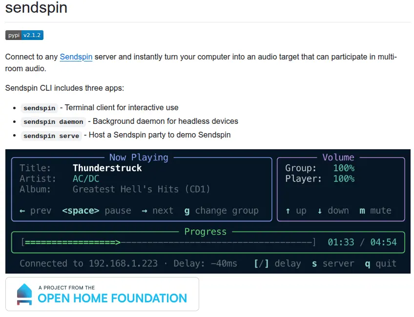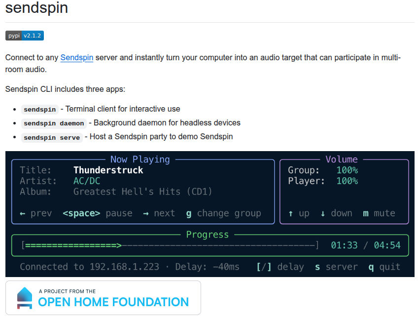 Sendspin CLI: https://github.com/Sendspin/sends…n-systemd-linux