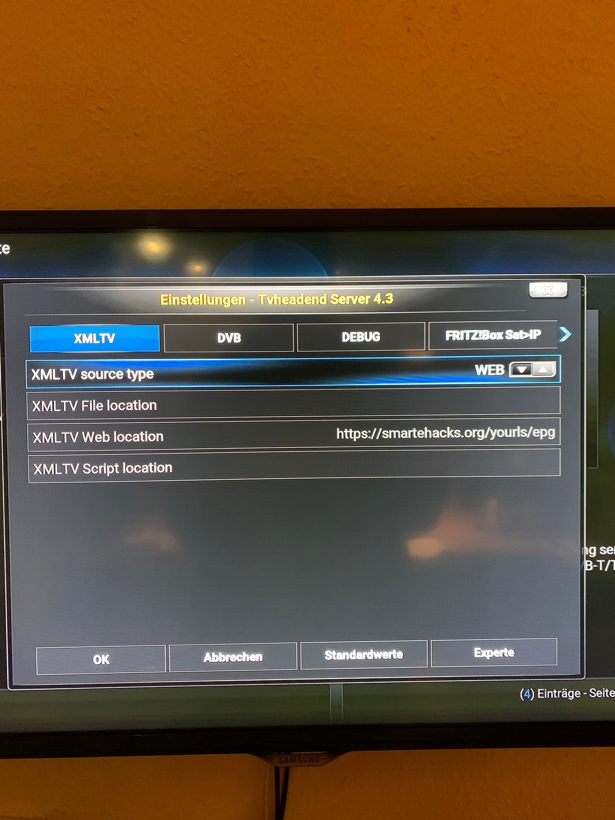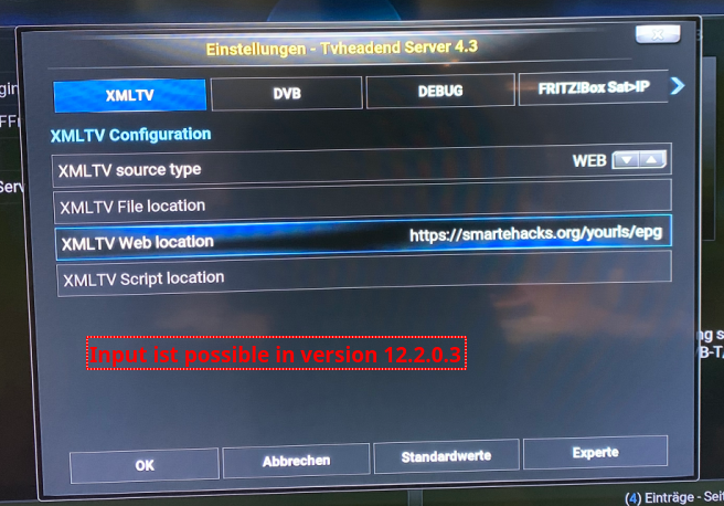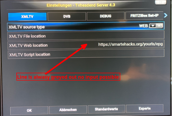 If you select a XMLTV source type here, an input in the relevant line is possible.