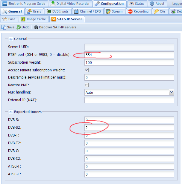 Tvheadend 4.2 has an build in Sat>IP Server which is a bit tricky to setup.