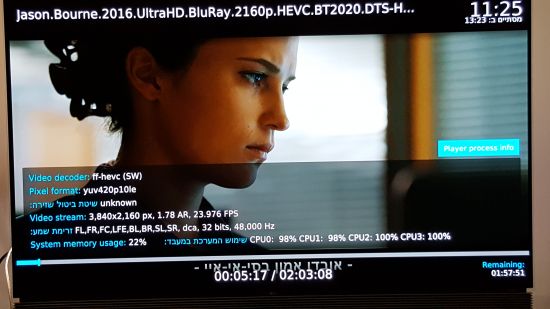 Currenlty there is no way to play the movie. It always stuck and also does not transfer DTS-HD sound.