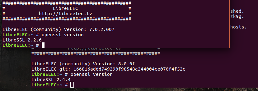 I've noticed that LibreELEC 7.0.2 and 8.0 use different LibreSSL versions, don't now if this is the cause.