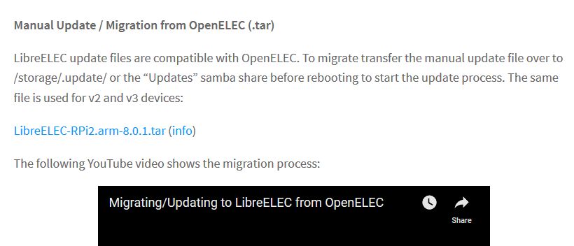I tried migrating from OpenELEC to LibreELEC on my Asus Chromebox. I watched the video, which was pretty straightforward. I downloaded the file from the Downloads page under "Manual Update / Migration from OpenELEC (.tar)", and dropped that into the Update folder of the Chromebox. So far, so good.