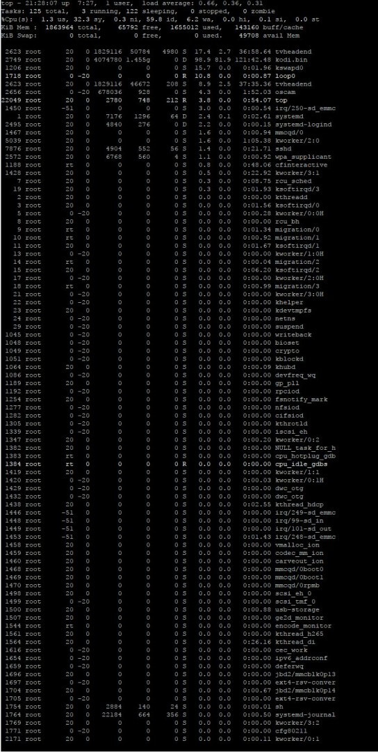 I'm running libreelec on Wetek Play 2 from nand and after a few hours of running live tv (dvb-s tuner, tvheadend) whole libreelec freezes for few hours (12 and more) then it starts working again. Unfortunately I can't get a debug log because it takes a long time to get to this error and debug log wouldnt fit into my box's storage.