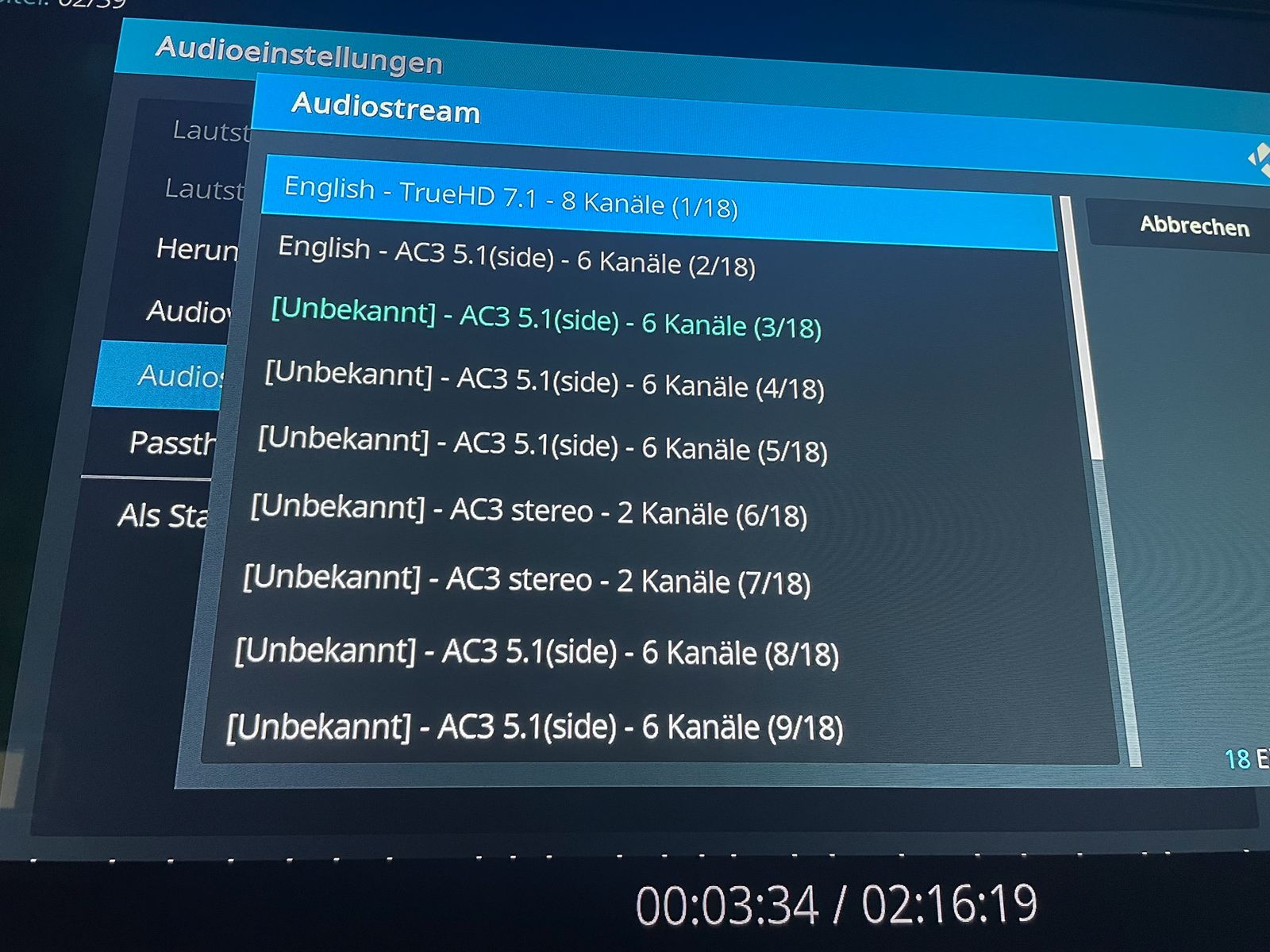 2. with the BD-UHD-4k Movies, there only show the english and japanese audiotracks, all other audio tracks are unknown,