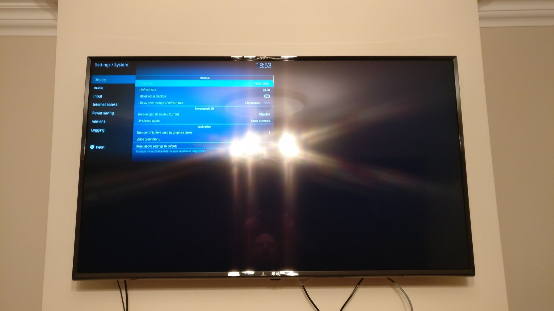 If I change the resolution of the Kodi interface to 4K the TV just displays a static 1080p image in the top left quarter of the screen. The image appears to be what was on screen immediately before the Confirm/Revert resolution change message.