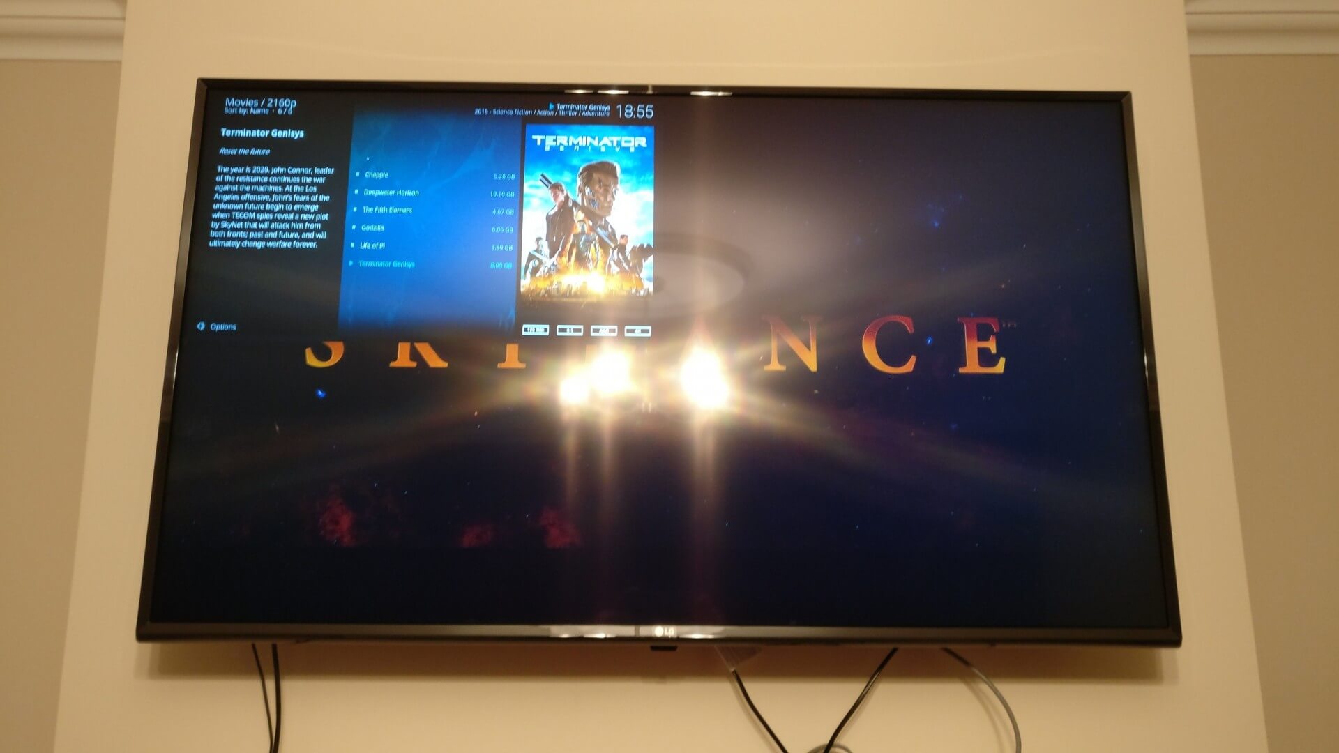 If I leave the Kodi interface at 1080p and then play a 4K video, the TV switches to 4K @ 24Hz and plays the video. However, a static image of the Kodi interface is overlayed in the top left corner as above.