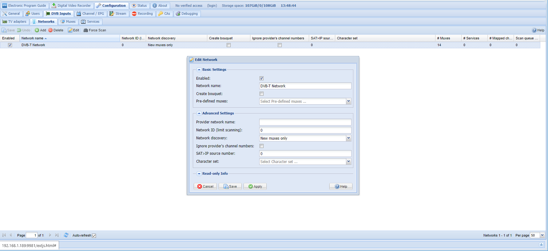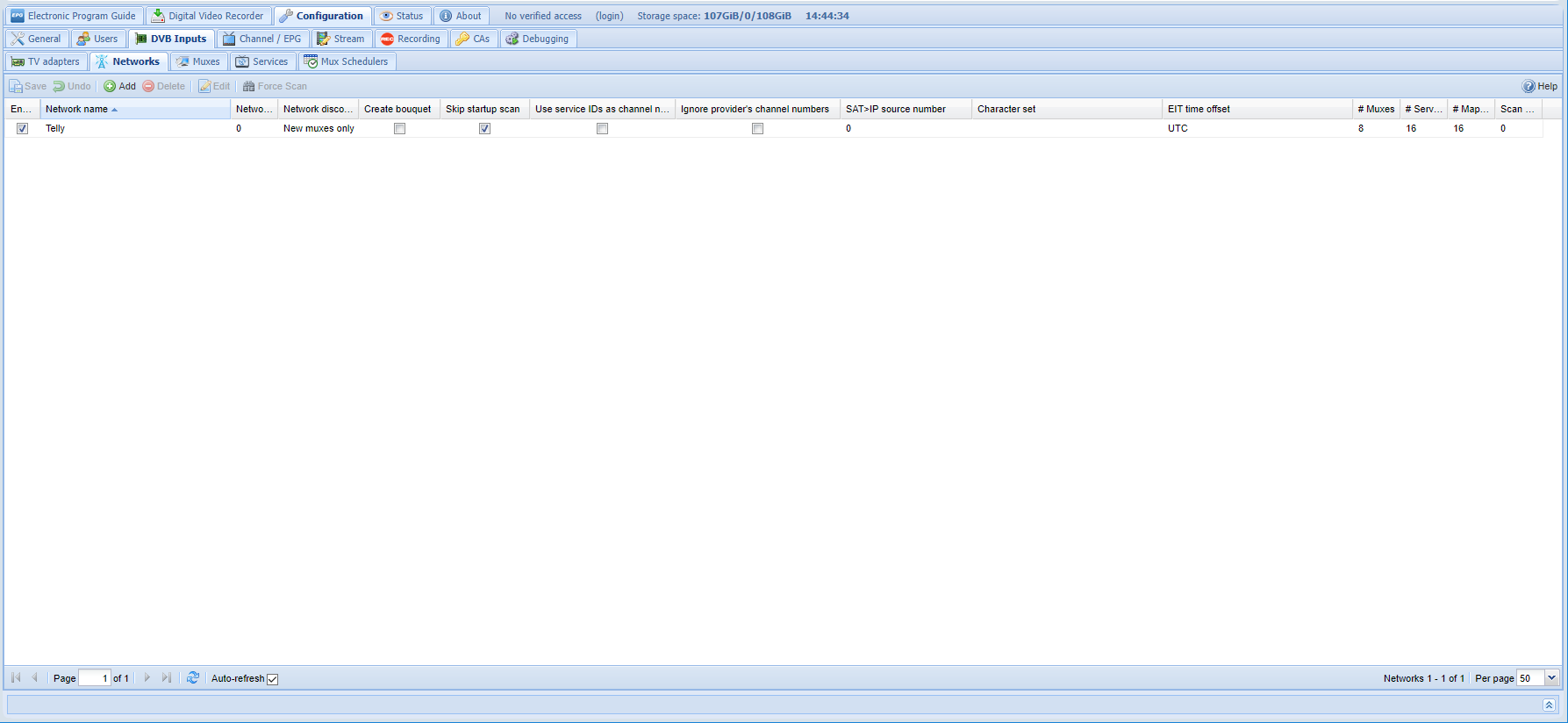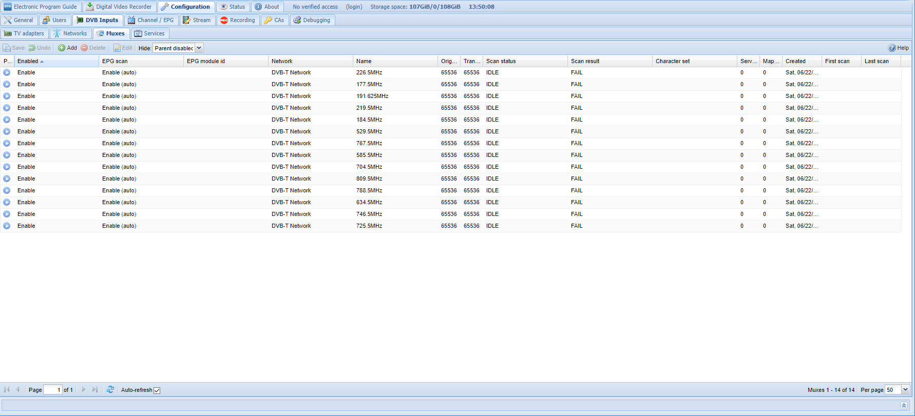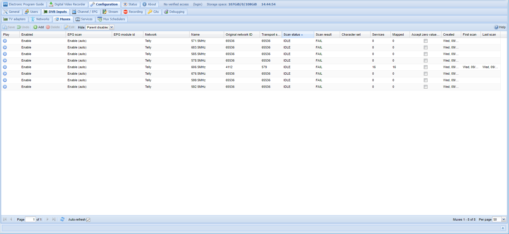 I changed to all those frequencies and did another scan, and it seemed to populate all the muxes/channels okay. Went out to the telly to try it and the EPG was blank, as was the channel info for each channel in its tab. Bugger, I thought, but then I tried picking a channel and it worked. I had wondered if it was going to take some time to populate all the details and that's all it was.